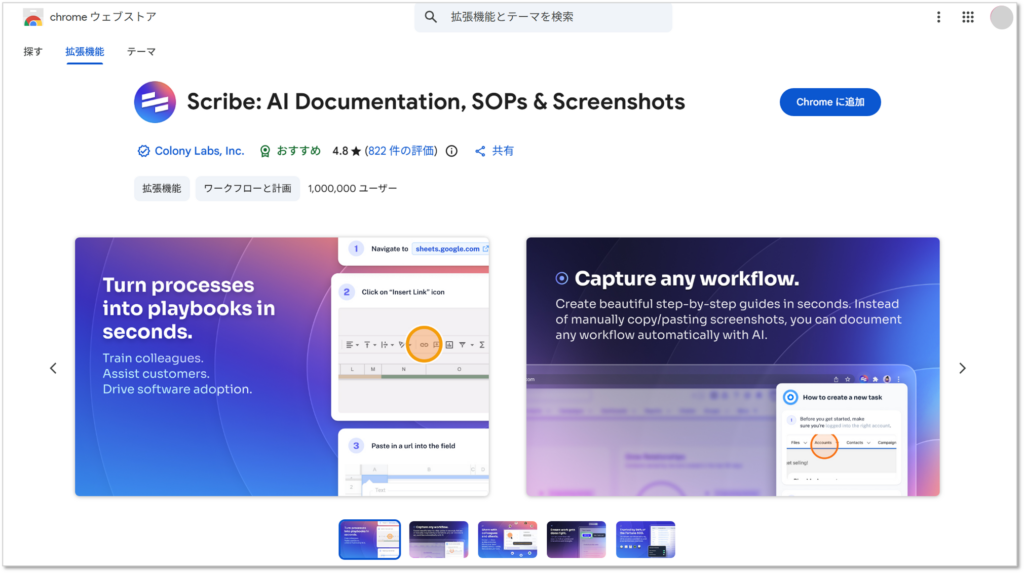これら一連の手作業による負担を解消し、業務を効率化するためのツールがChrome拡張機能の「Scribe(スクライブ)」です。