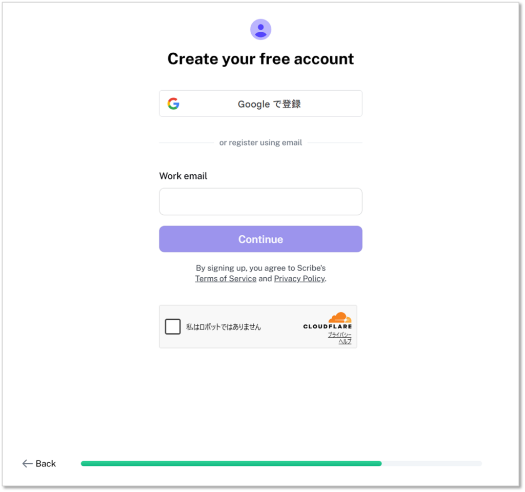 Googleアカウントでアクセスするか、メールアドレスで登録を行います。
