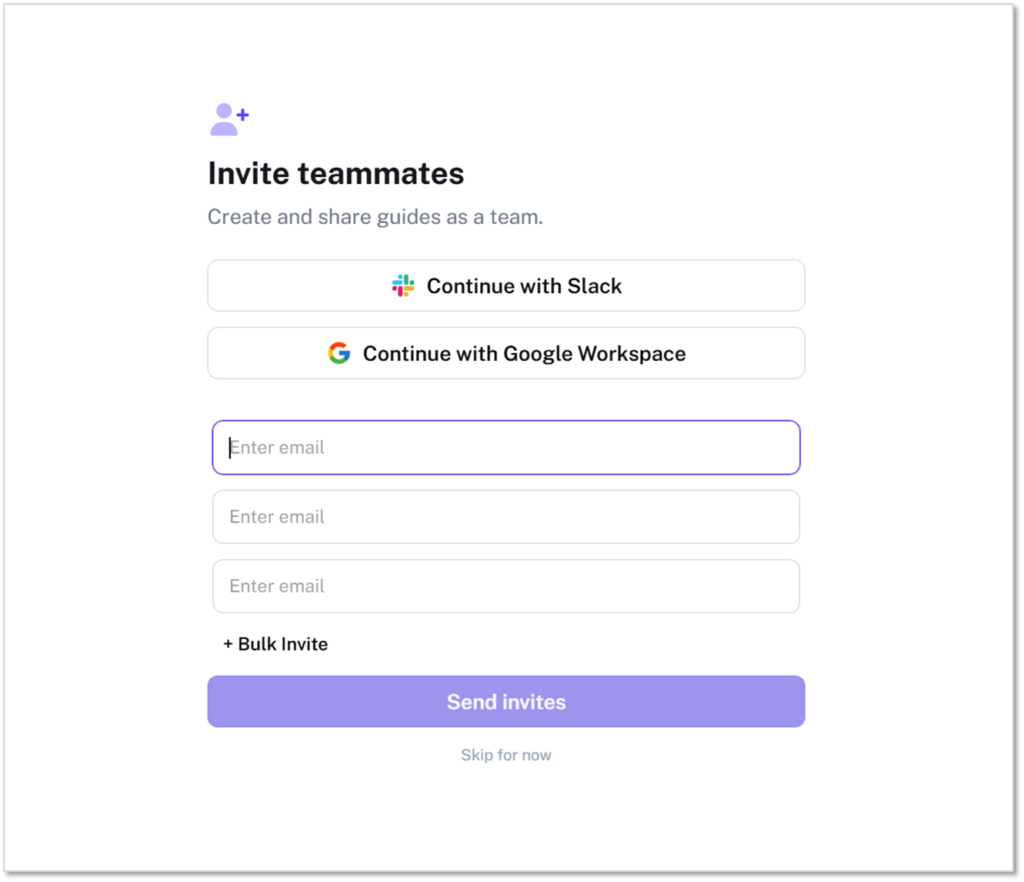 SlackやGoogle Workspaceの連携、メールアドレスを入力することでメンバーを追加できます。