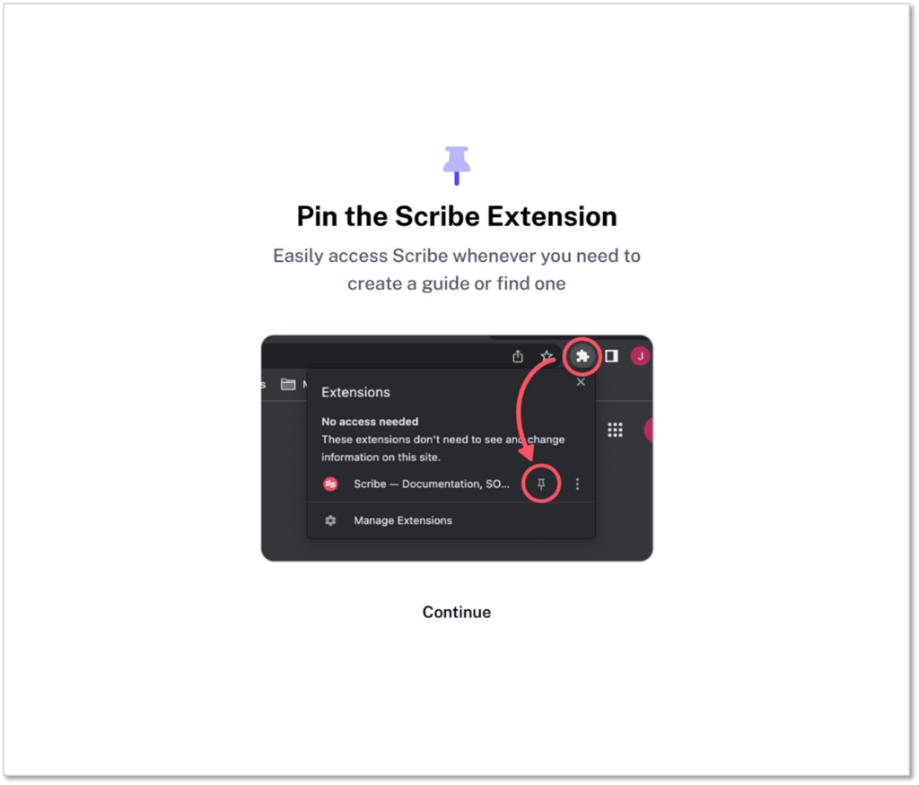 ブラウザ右上のツールバーにScribeアイコンを固定(ピン留め)する方法です。