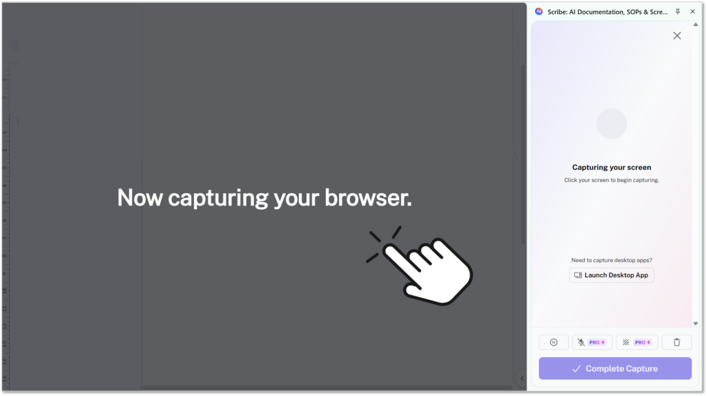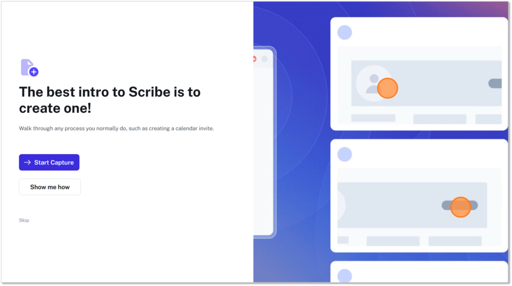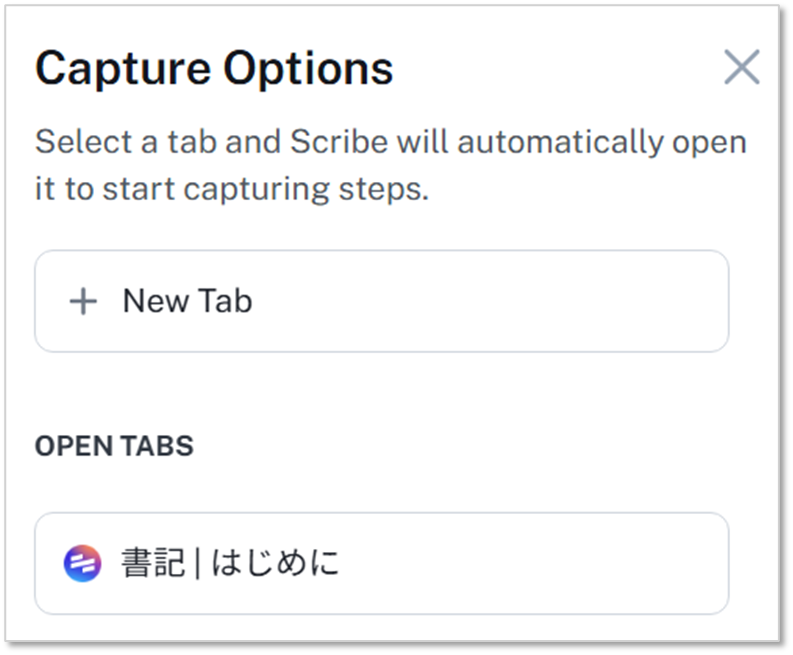 「Start Capture」または「Create your first Scribe」をクリックするとポップアップが表示されます。