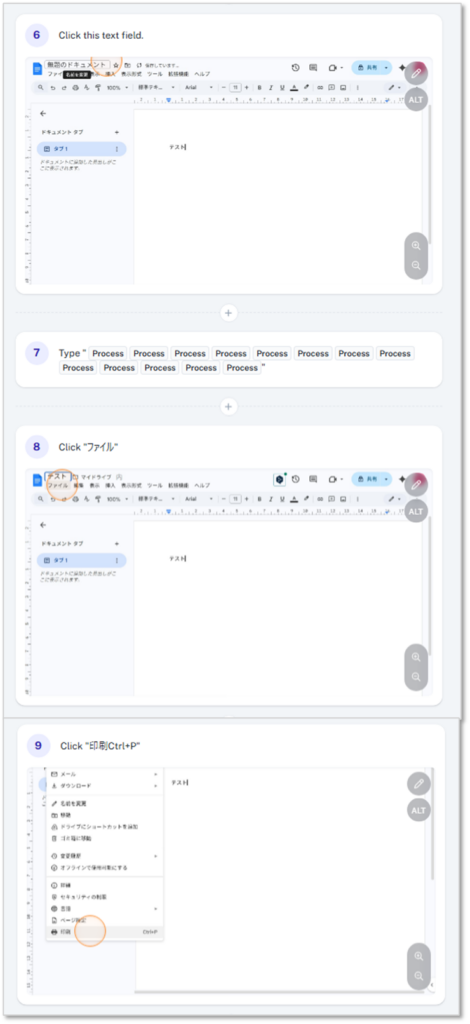 そのため、「テストで作成したGoogleドキュメントをPDFに加工してデスクトップに保存する」という操作を行いました。