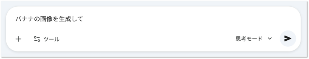 入力欄の右側には、Nano Bananaを象徴する バナナ型のアイコン が設置されており、これを選択すると画像生成専用のモードに切り替わります。