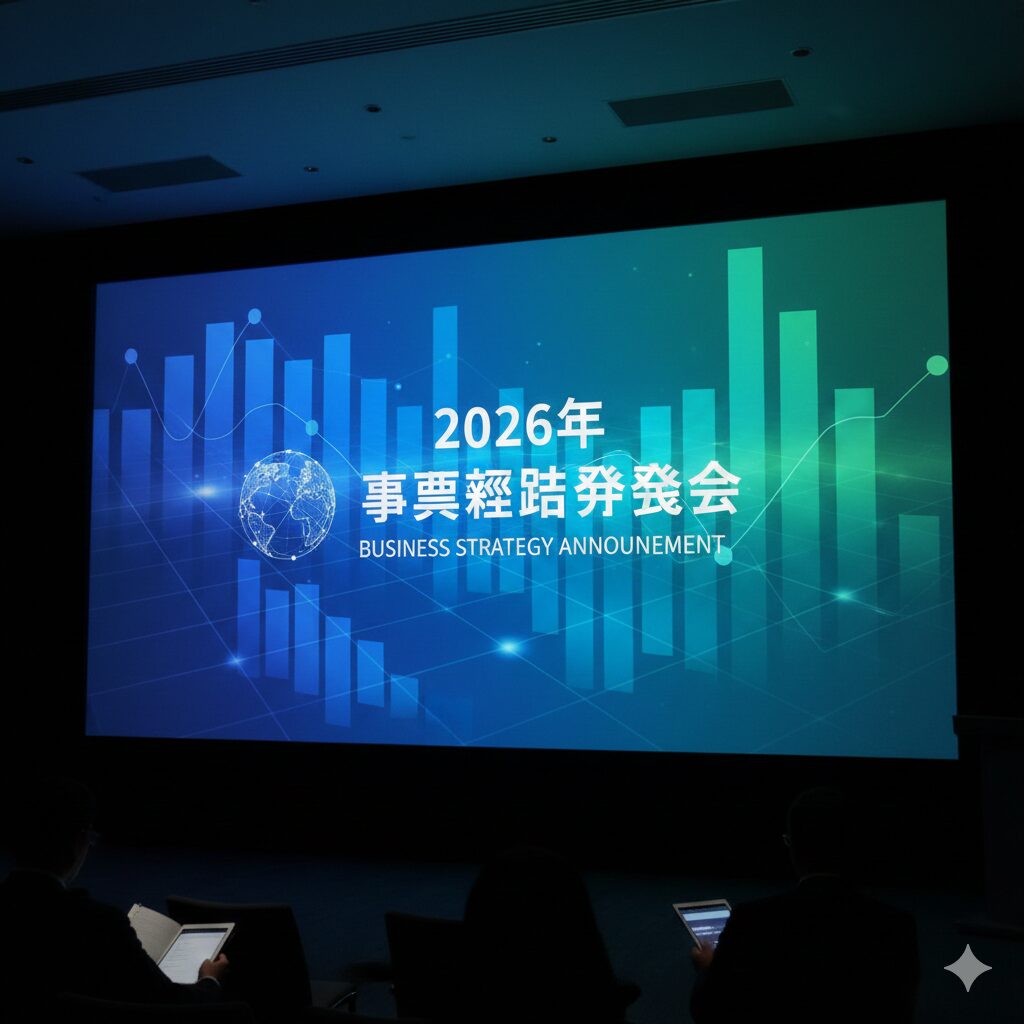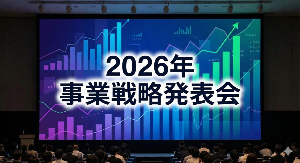 どちらのモデルも「事業戦略発表会」というキーワードから、実際の発表会でプレゼン資料が大画面に投影されている様子をイメージして画像を生成してくれました。